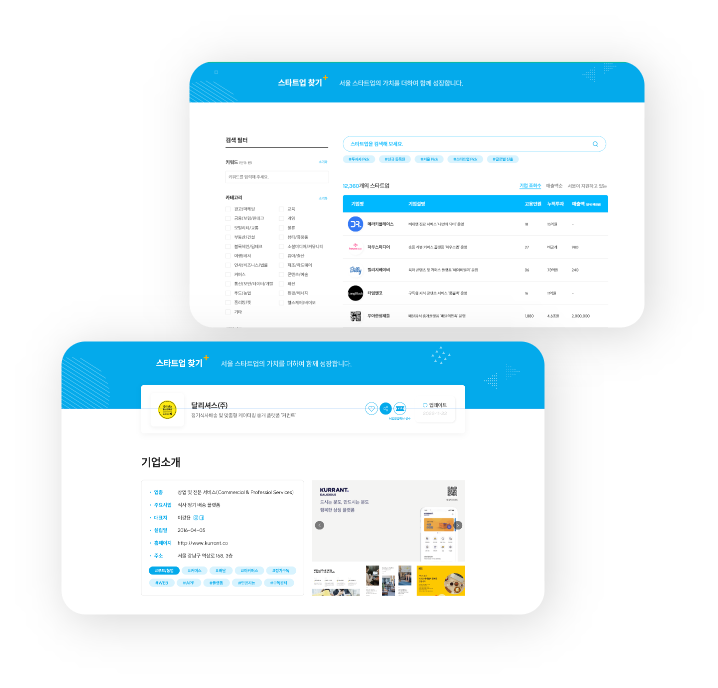 Search startups in Seoul by keyword, industry, and year of establishment.